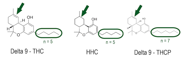 Propylcannabinoide sind sogenannte Homologe der o.g. Pentylcannabinoide. Ihre Alkyl-Seitenketten haben nur 3 statt 5